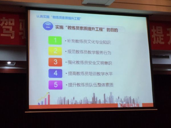 此次培训,由江西驾培协会会长林素君做开幕词,由中国交通运输协会驾驶员工作委员会副主任范立教授做为主讲老师,此次组织“教练员素质提升工程”的目的是: