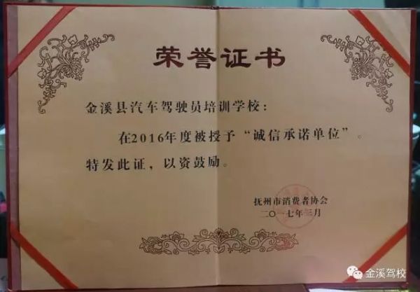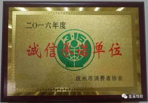 金溪—王波驾校已经连续多次被抚州市消费者协会授予年度“诚信承诺单位”,这次活动中有四家企业被授予2016年度“诚信承诺单位”称号。其中金溪-王波驾校在2016年通过各个考核及公示,被抚州市消费者协会授予2016年度“诚信承诺单位”,金溪-王波驾校饶悦之校长参加了授牌仪式。